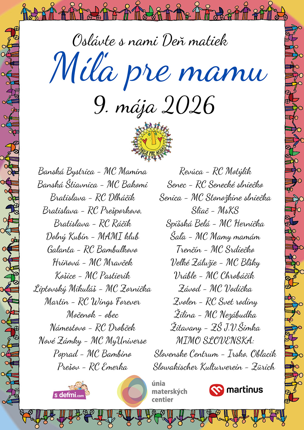 Zoznam organizátorov Míle pre mamu v roku 2026